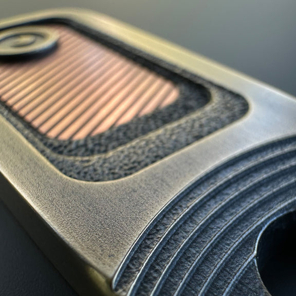 Edges and high points are intentionally brushed, not polished. This finish is designed to evolve with handling, pocket carry, and play — wear is expected, encouraged, and considered part of the piece’s personal history.